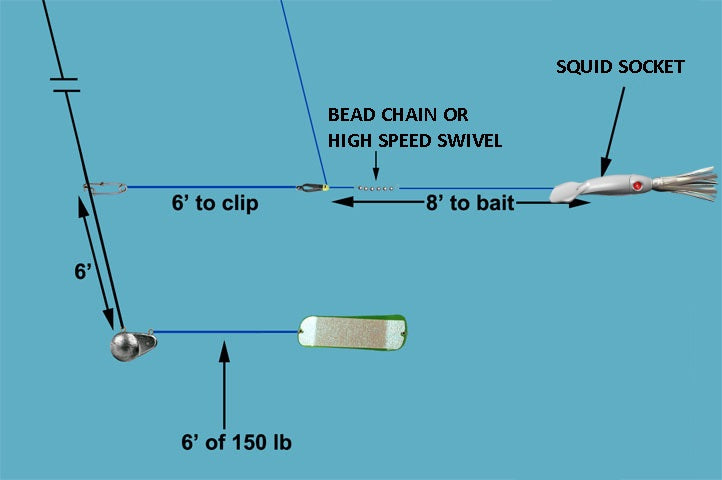 The Squid Socket does not require a flasher as it generates its own action. However, if you decide to use a flasher for attracting fish, we recommend a dummy flasher setup shown in the image below. This setup ensures the lures action is not dampened by the flasher and the fights with fish will be amazing!